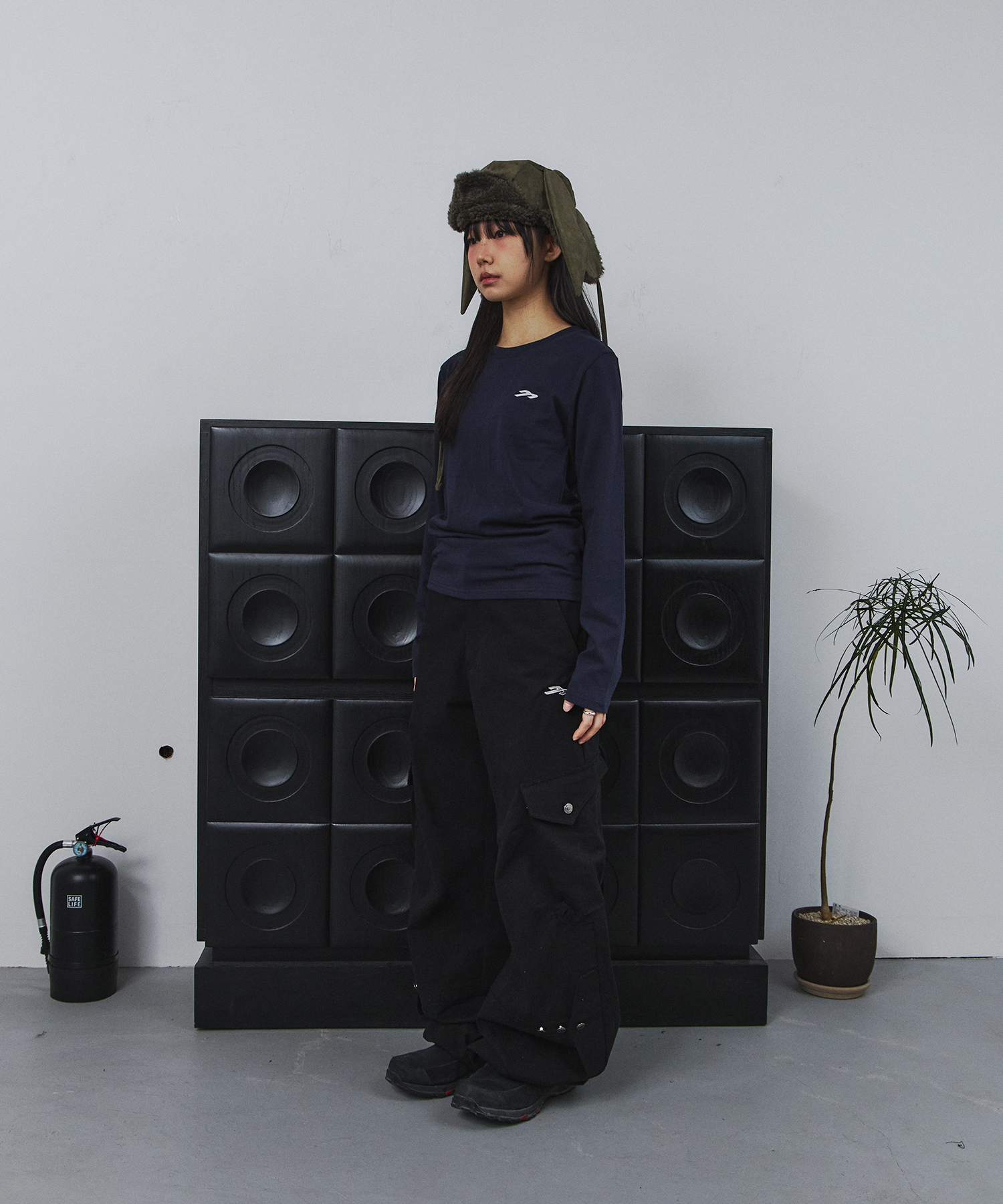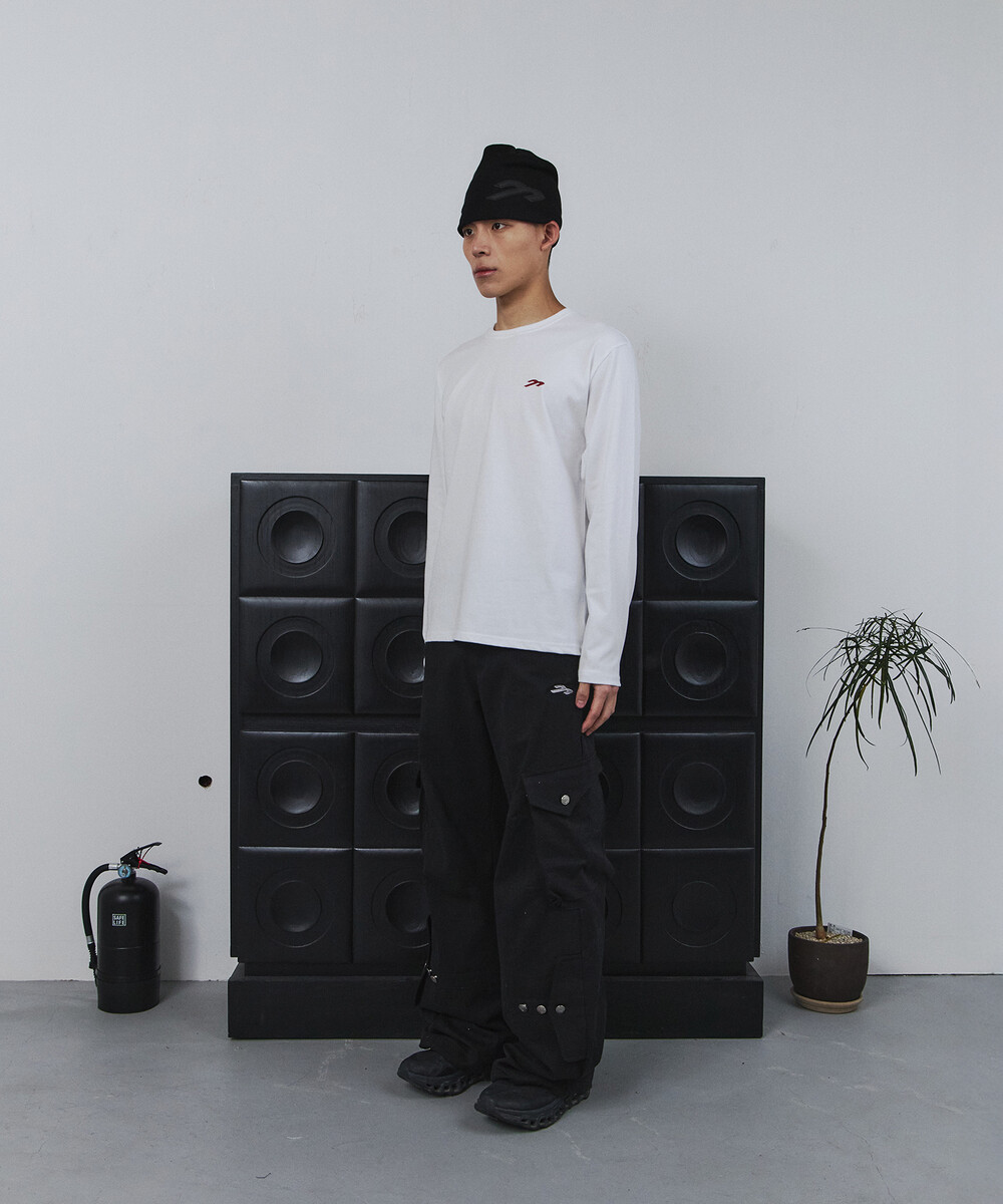 코튼 와이드 크로스 카고 팬츠 (블랙)