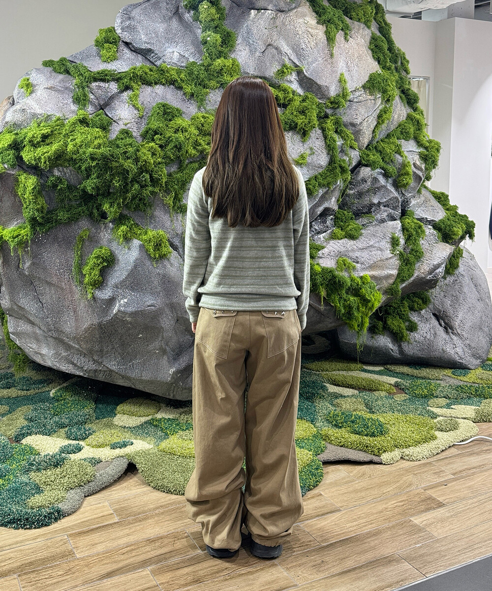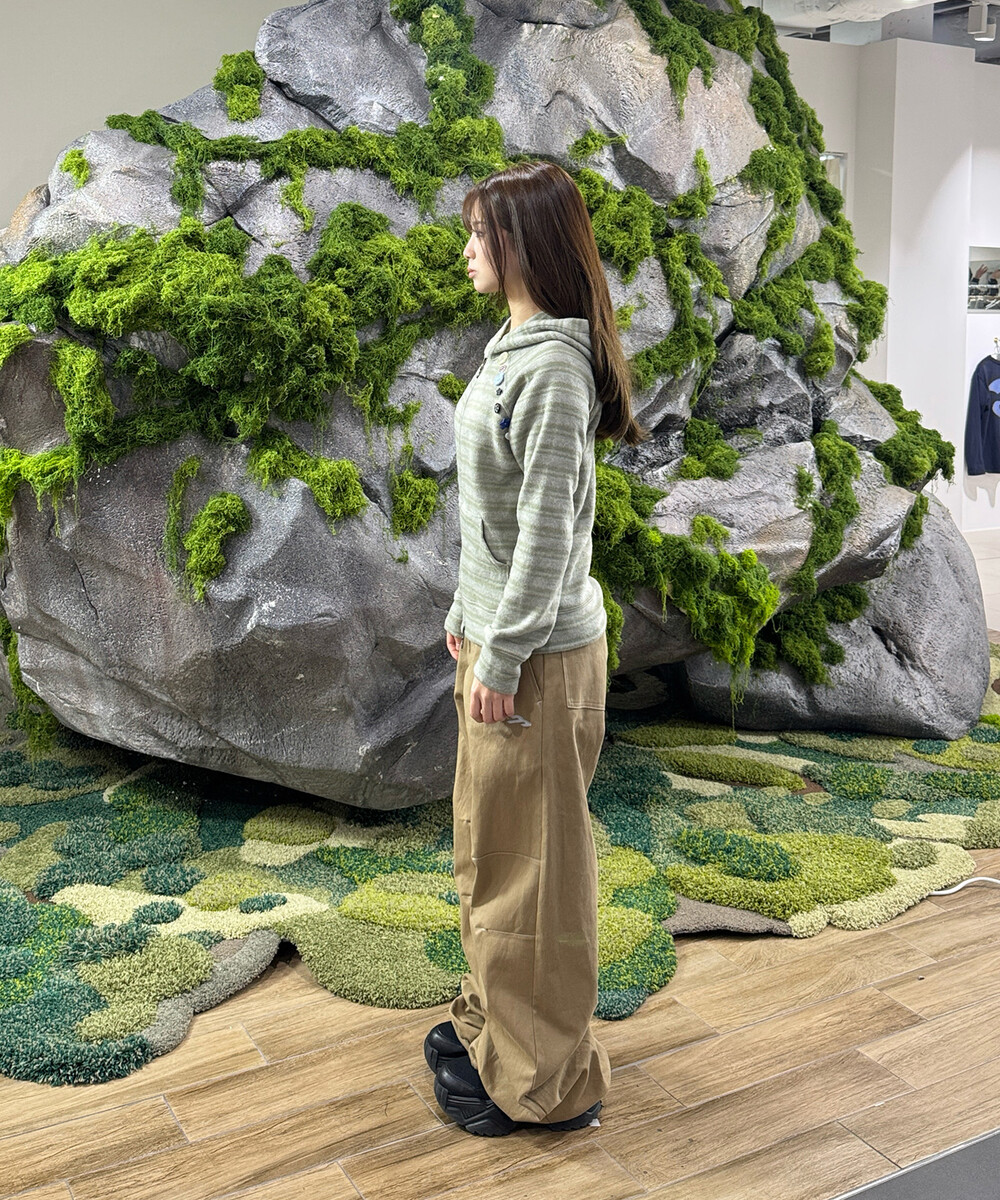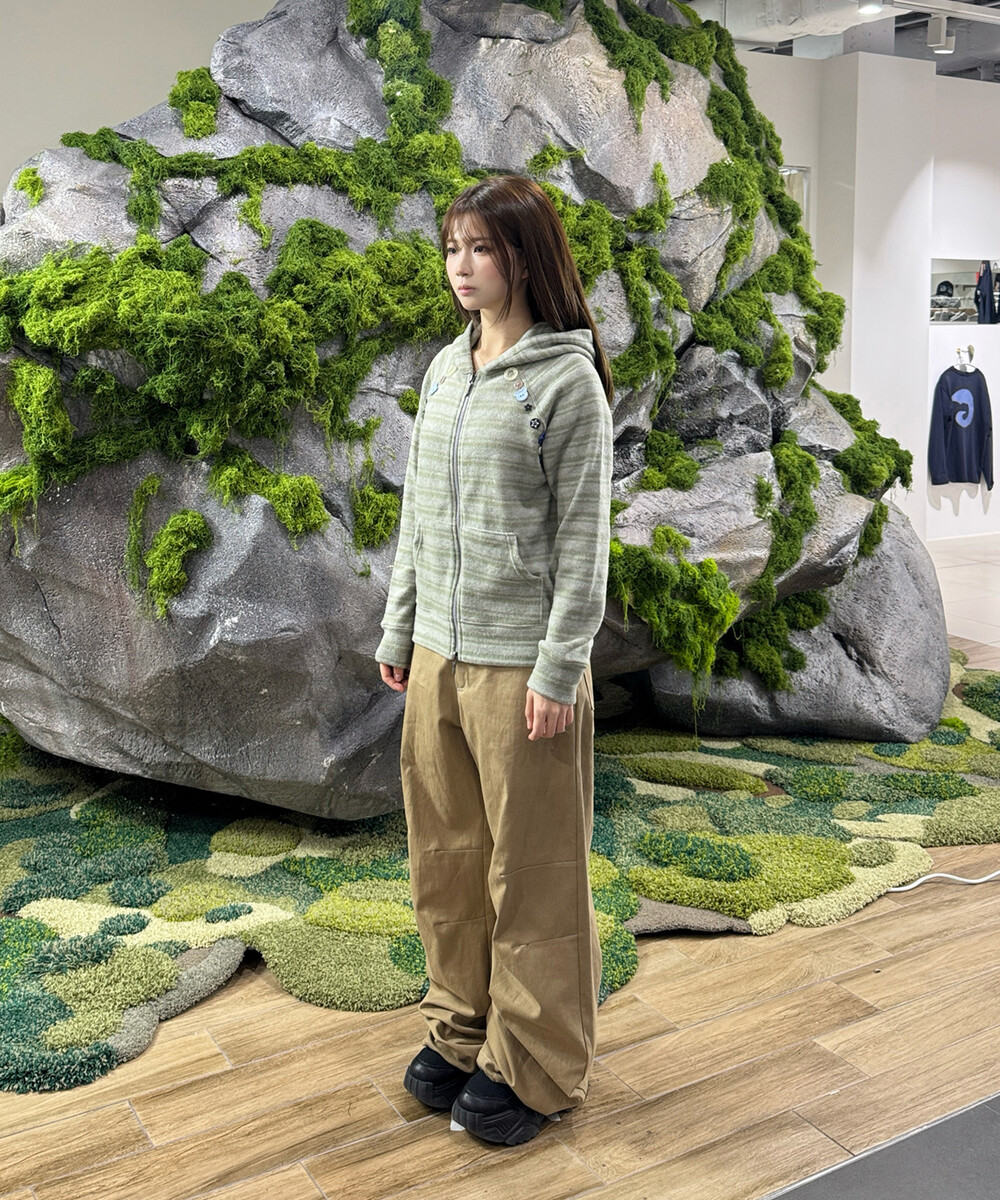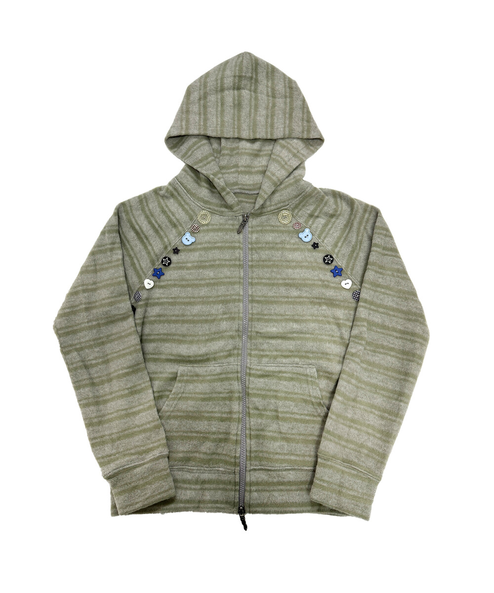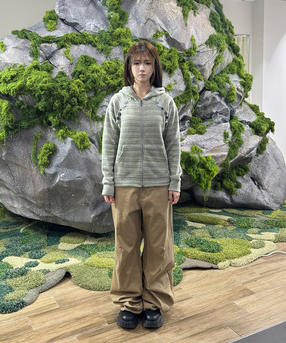 오디피기X탄산 스트라이프 버튼 후드집업 세이지그린