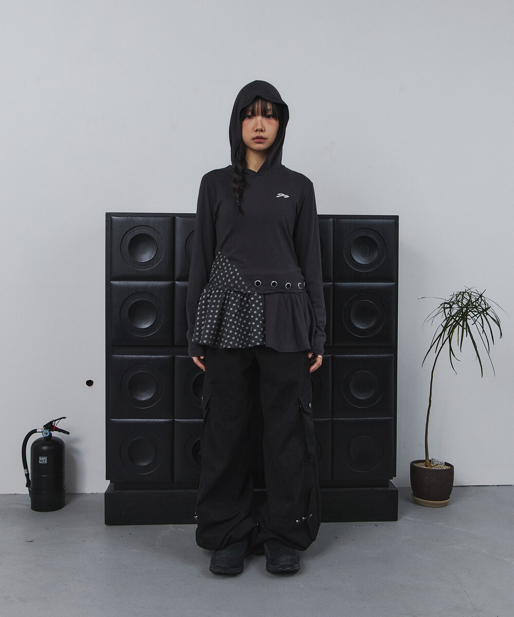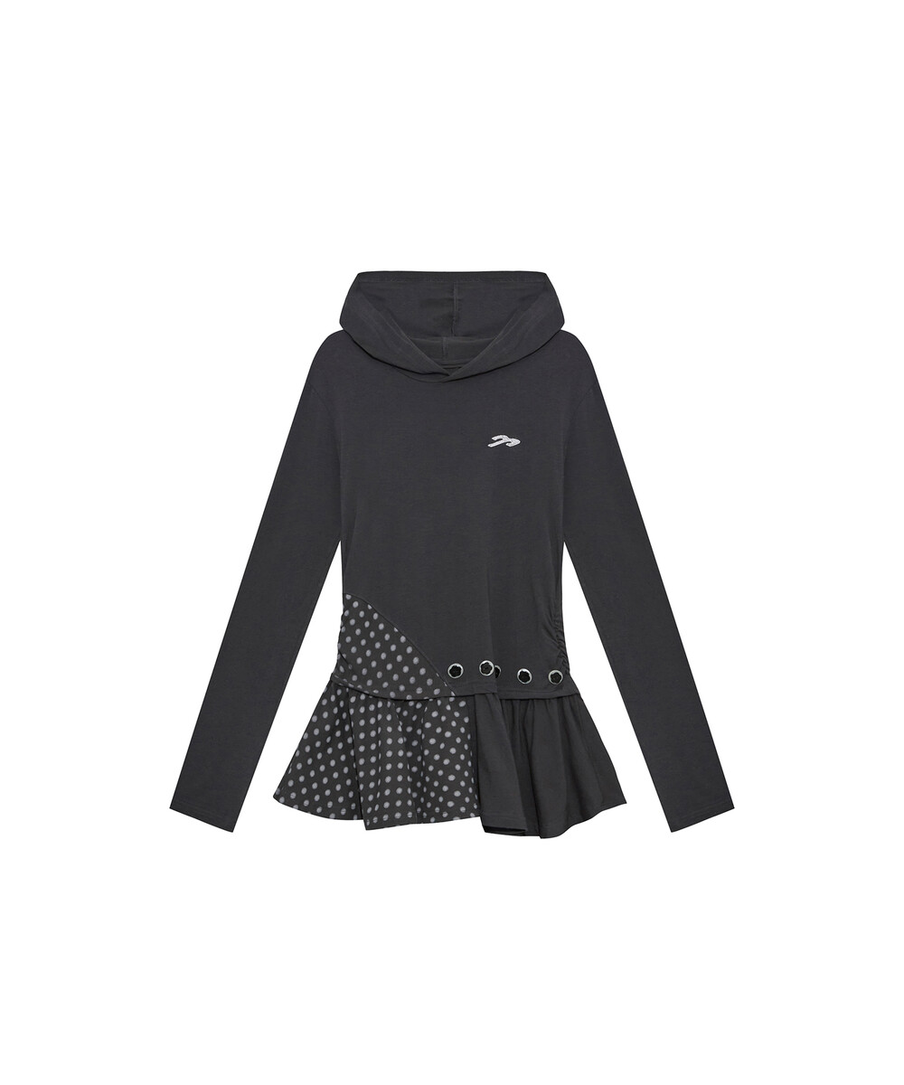 (2/27 예약배송) 버튼 후드 레이어드 원피스 (차콜)