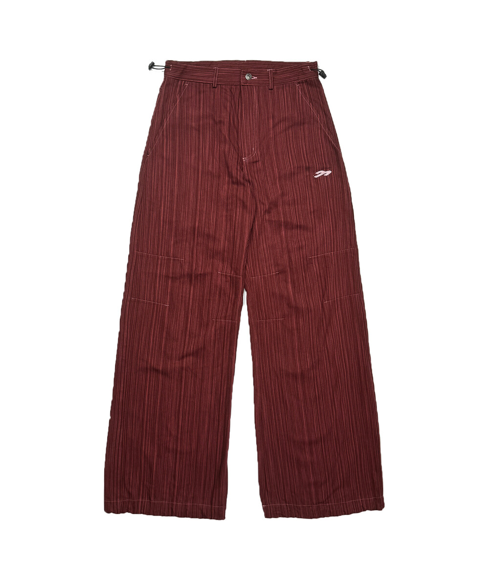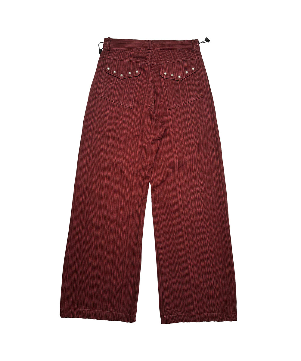 코튼 와이드 스터드 팬츠 스트라이프 버건디