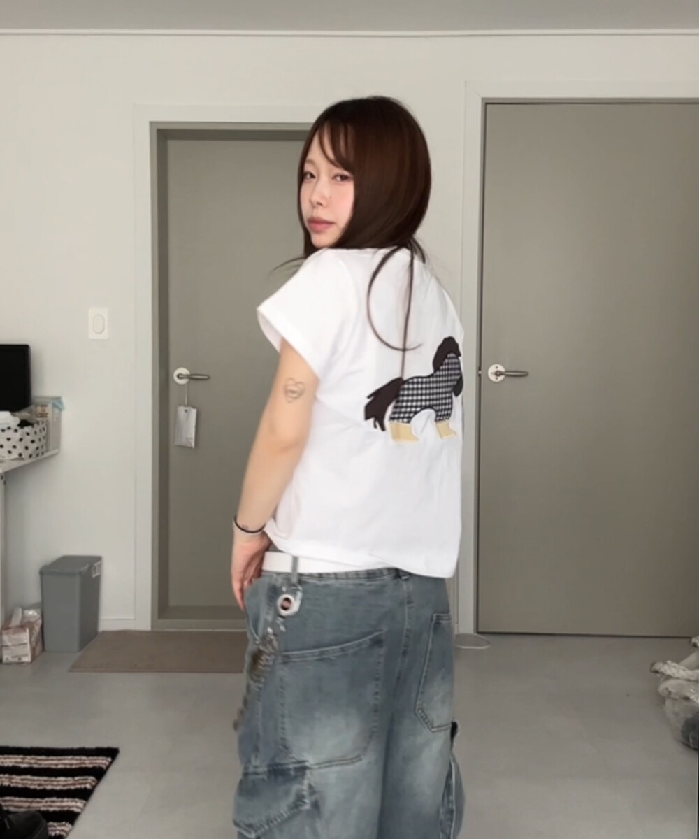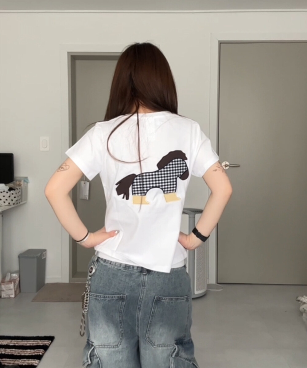 포니 아플리케 티셔츠 (화이트)