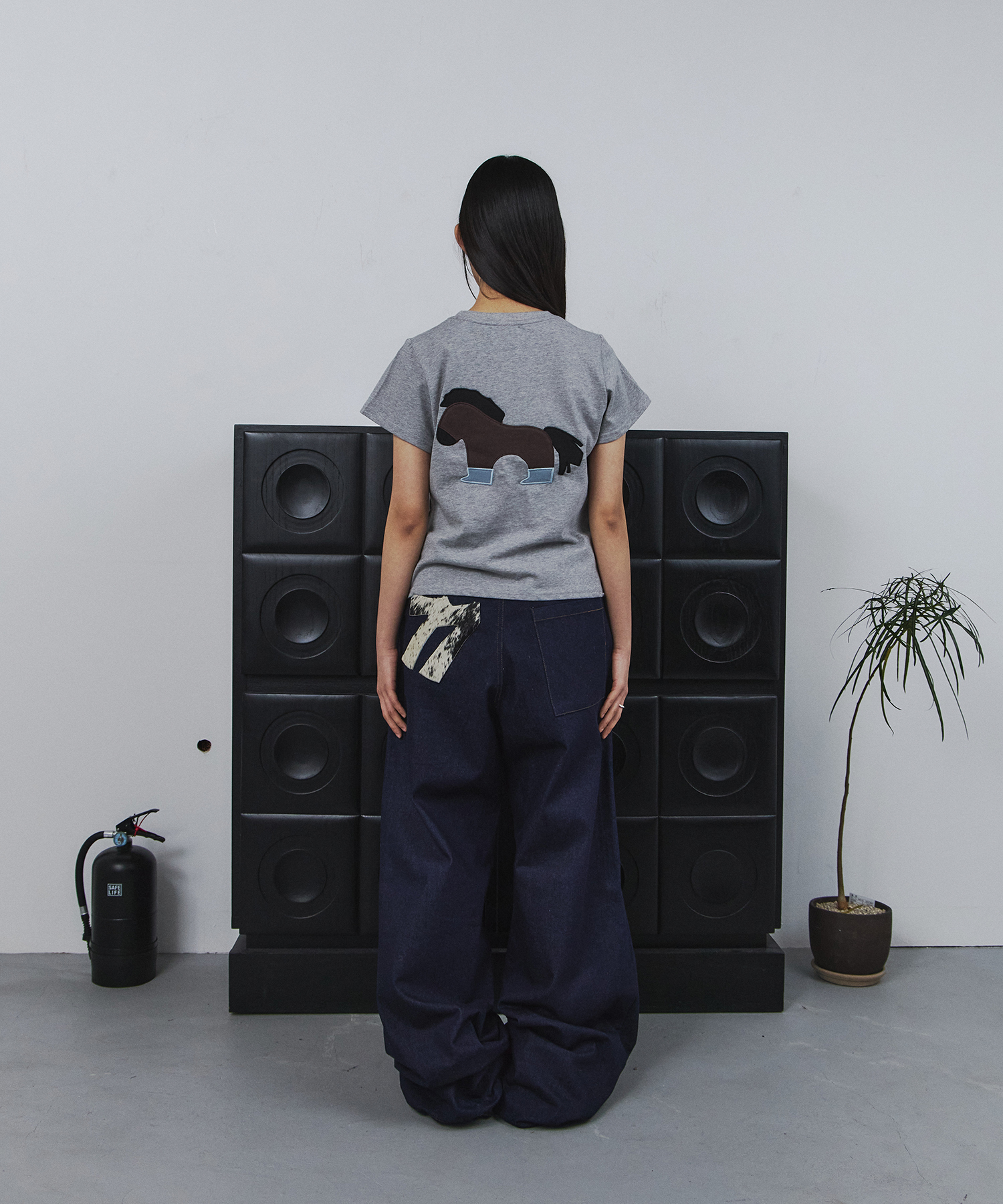 포니 아플리케 티셔츠 (그레이)