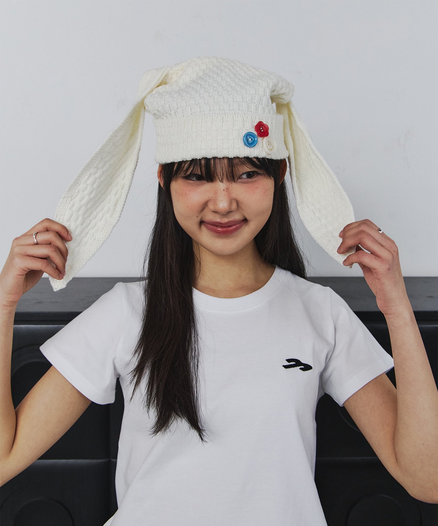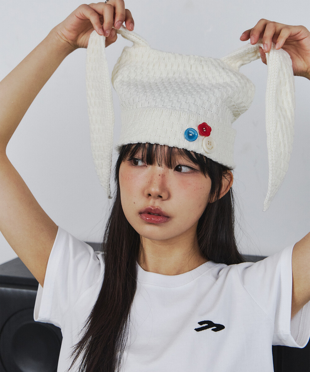 버튼 레빗 비니 (아이보리)